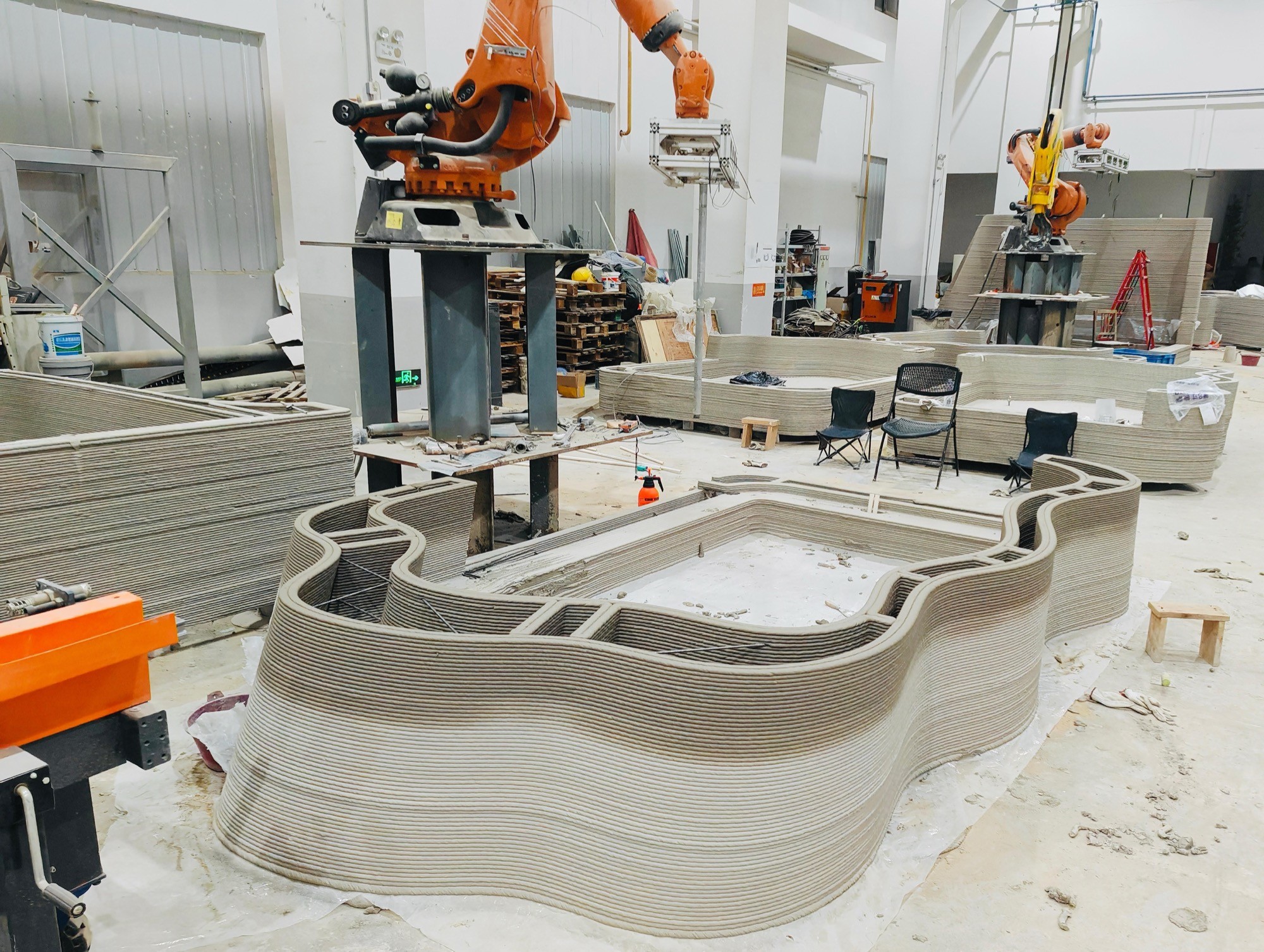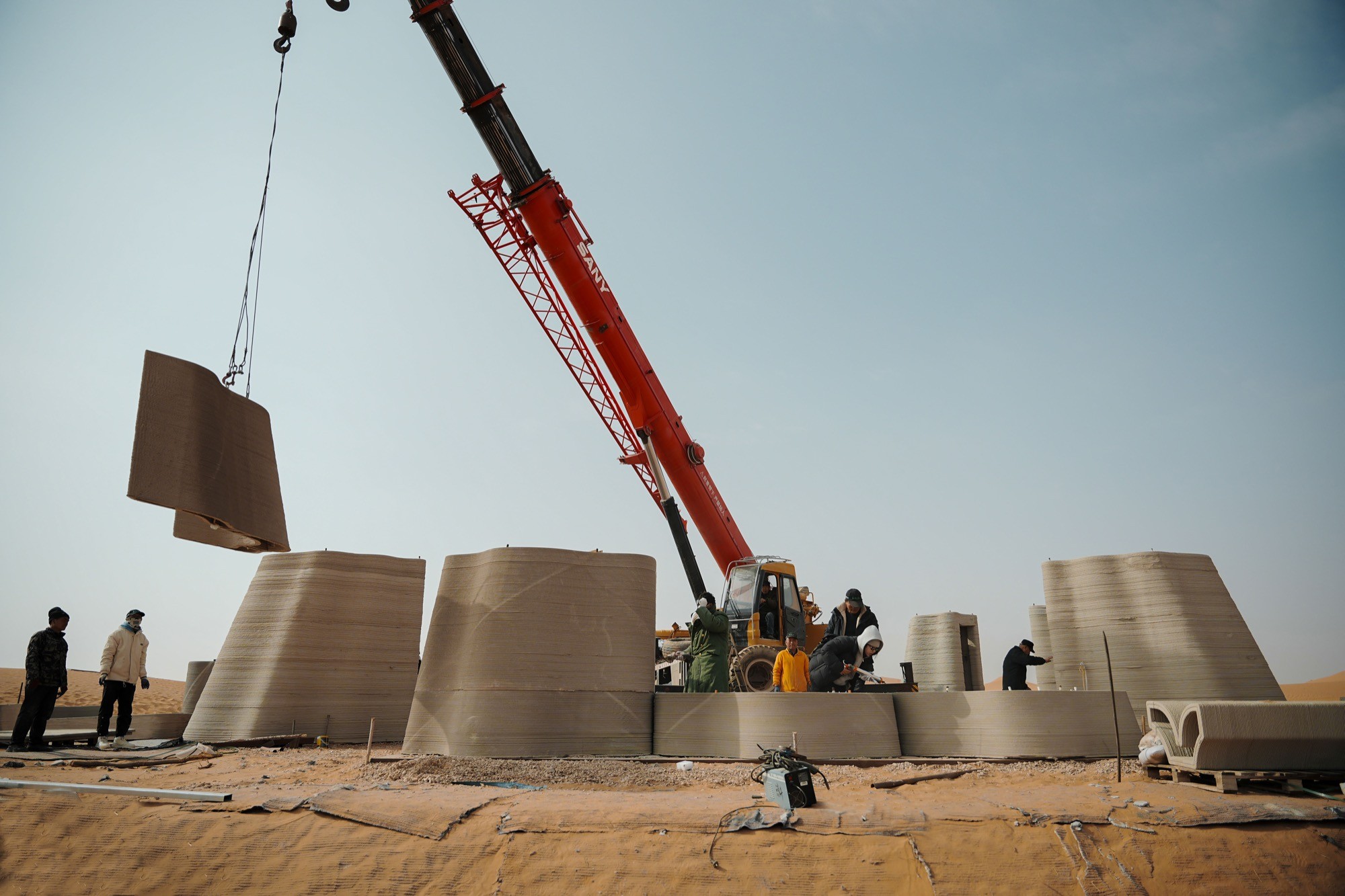 Each unit was prefabricated in Wuxi using the R3DCP printing system, with furniture embedded directly into the concrete body. The modules were transported by standard trucks and assembled on site in just two days, with the help of local herders.